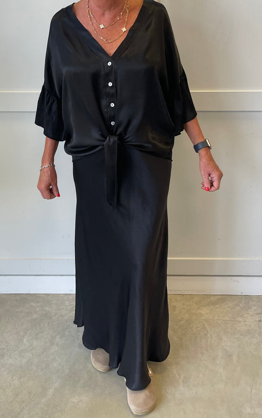 The Sasha luxury satin tie front blouse shirt