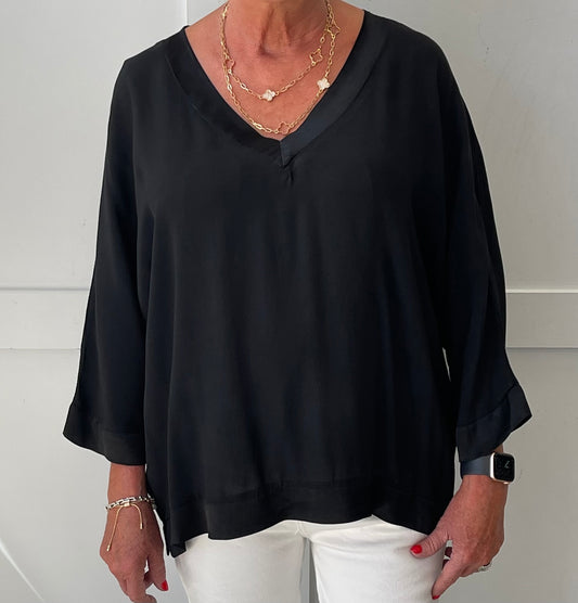 The Hannah Satin Edge V Neck Top