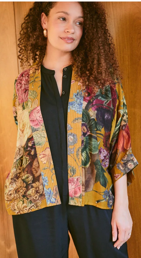 Our bestselling kimono jackets have loose ¾ length sleeves, an open front and a lightly embroidered lapel. Pair with a matching camisole and your favourite jeans in summer or layer over a polo neck during the cooler months.